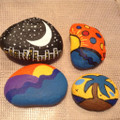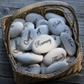 He visto esta idea en Pinterest y me ha encantado: pintar piedras como marcasitios! Por un lado poner el nombre con un rotu, por el otro pintar algo relacionado con la persona... (No somos muchos, y...